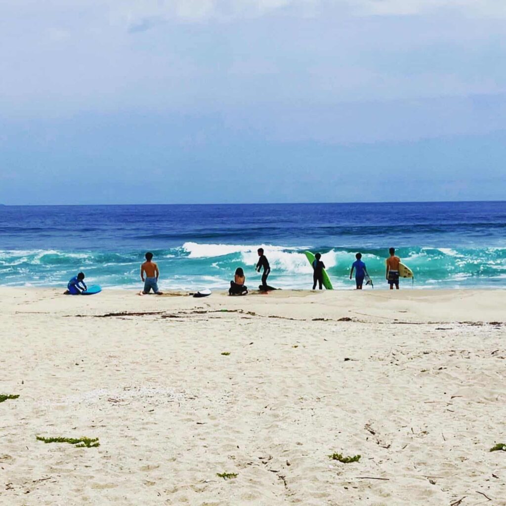 サーフィンスクールは感染症対策を行いながら、実施中です。