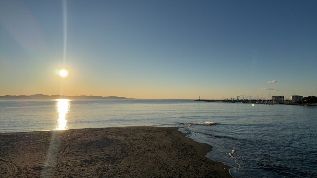 今日も素晴らしい景色です。富士山くっきり波はサイズダウン、ヒザくらい寒いので防寒必須です。